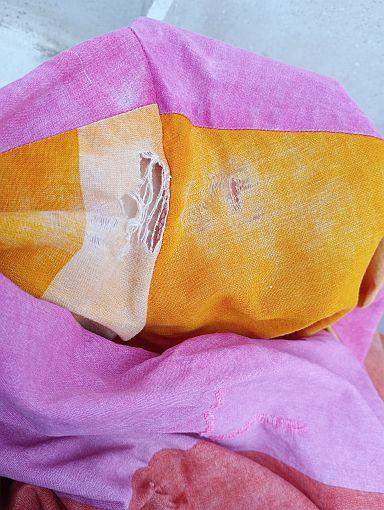 Nie będę spodni łatać. Widzę, że materiał się sypie po całości. Właśnie je piorę. Może pojutrze pękną w kroku tak, że będą grozić pokazaniem tyłka, a może dadzą się donosić jeszcze ze dwa prania. Na dole nogawki są mniejsze tarcia i materiał jeszcze się nie rwie- być może z kawałków od kostki do kolanka zszyję torbę bo te kauflandówki (wielorazowe torebki do warzyw i owoców z charakterystycznym czerwonym ściągaczem) już mi się prawie wszystkie wydarły. Dobrze służyły, lekkie i małe, ale, jak wspomniałam w pierwszych słowach, po siedmiu miesiącach rzeczy zaczynają się wyużywać.